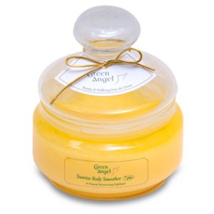 My iteration of Green Angel’s Sunrise Body Smoother had a mason jar closure. Well! This was just about the silliest thing I’d ever seen in my life. Sure, the seal might keep the product fresh and useable ’til Kingdom come, but seriously, having to mess around with the fiddly lever thing when in the shower? Pain. In. The. Bum. Solving the problem by opening it before hand has ‘Duh’ written all over it, but this was not satisfactory either, because water got in and puddled in the product. Plus! The top of the lid is so heavy that you have to take care to balance it properly or disaster will ensue.