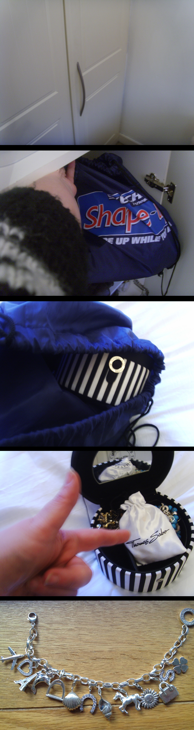 After I posted The Lament of My Thomas Sabo Charm Bracelet yesterday, I got up and went through the cupboards again. Since I had purged so much before I moved — and even during — I knew this was a pointless endeavour. Equally, though, I knew that I hadn’t thrown out a bag of stuff by mistake, or left anything behind in the old flat, or made the bracelet disappear with the power of my mind.