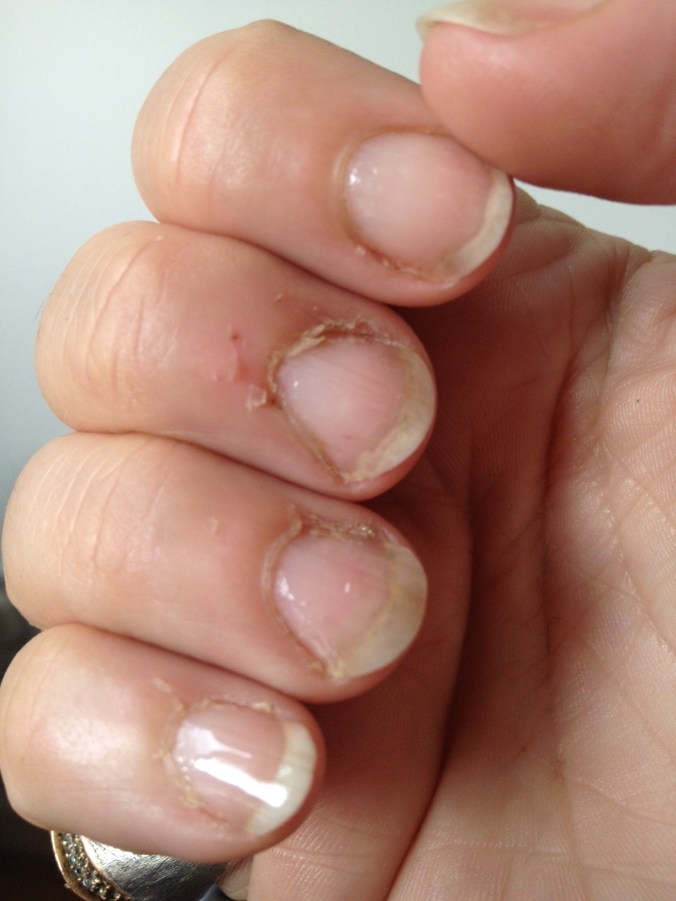 OMGGGGG. Okay, first of all, let me say that I don’t pick, peel, poke, shred, or gnaw my cuticles. All this excess skin — am I sci-fi lizard or something? I feel like if you cut off that middle finger, I would regenerate another one over night. Nassssty.