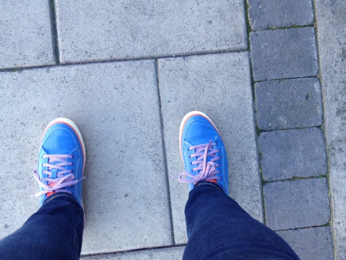 So: these. The Super T Sneaker in Sporty Blue is canvas, and colourful with it. I was particularly happy about the stripey laces. The sole is the new triple density Biomimetix™ midsole, which feels less wobbly than the sole that’s in the old school boot.