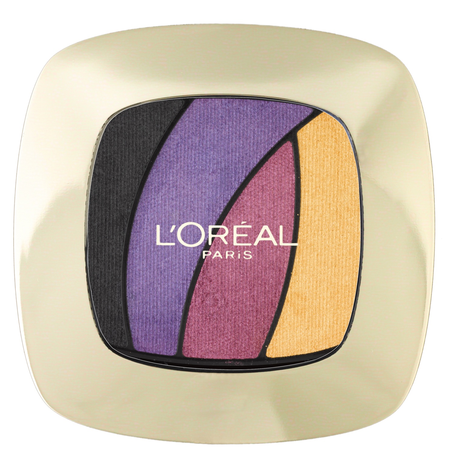 I reached down, and my hand hit this, one of L’Oréal’s new eyeshadow palettes for autumn, in the Colour Riche Les Ombres line. Hmmm, I thought. Green. I always think that green will make my eyes bluer, but it makes me look like I am due to be carried out of my gaff feet first. Eh, whatever, I like the look of the plummy bit, and after squinting, even with my specs, at the wee diagramme on the back, I laid it on myself.