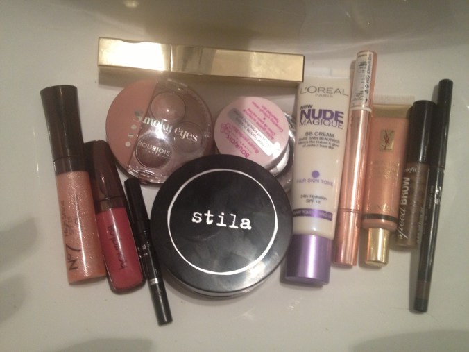 I am very much loving the Hourglass lippy: it really does last, and I counteract the dry-feelingness with a top coat of gloss — ooh, and the No 7 is super shiny! I am also very impressed with the Bourjois eye palette, less so with the primer, as it is such a small container, I don’t imagine I’ll get many faces out of it, if you know what I mean. The YSL illuminator was a little rosier than I wanted to go, but if you are feeling that pale-and-interesting is not working for you, this will warm you right up.