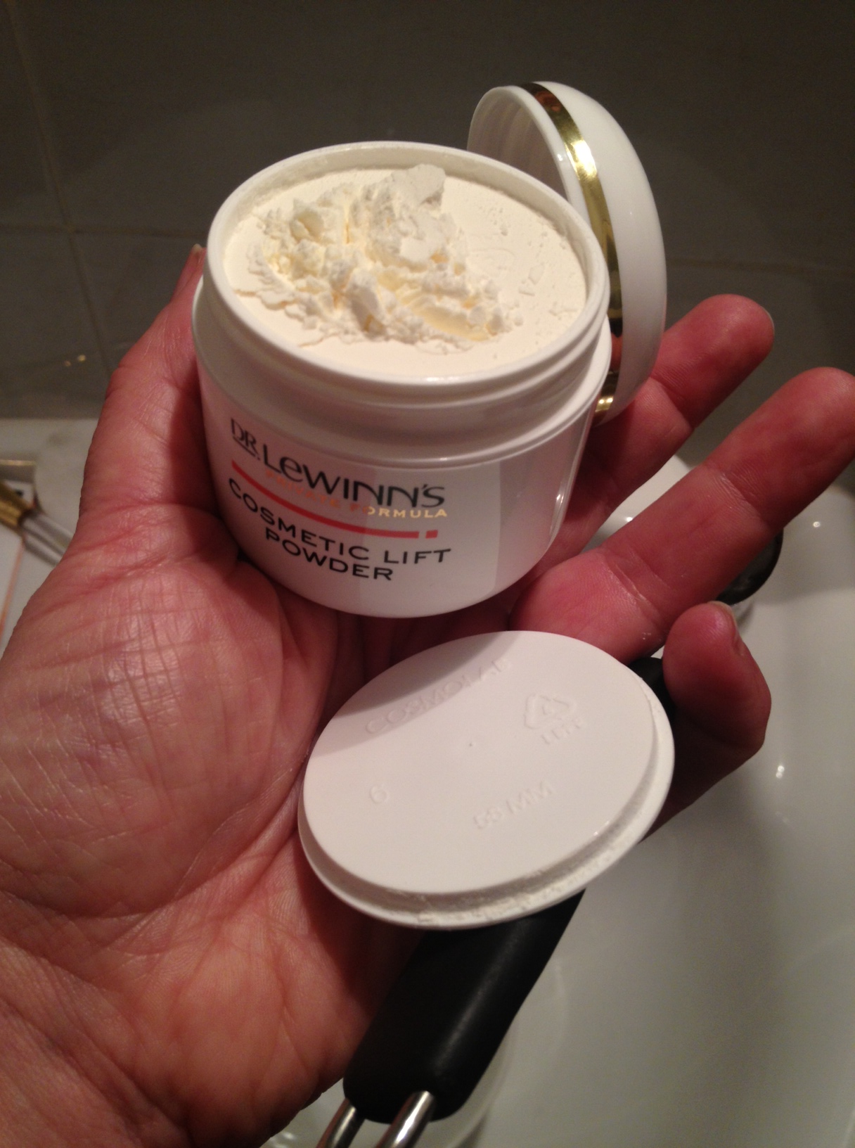 Second thing is to mix up the Cosmetic Lift Powder with a teaspoon of water. There is a mighty amount of powder in this jar! I reckon… I reckon there are at least 20 facial lifts in this jar? I was never any good at guessing the number of jelly beans, if ya get me. I think 20?