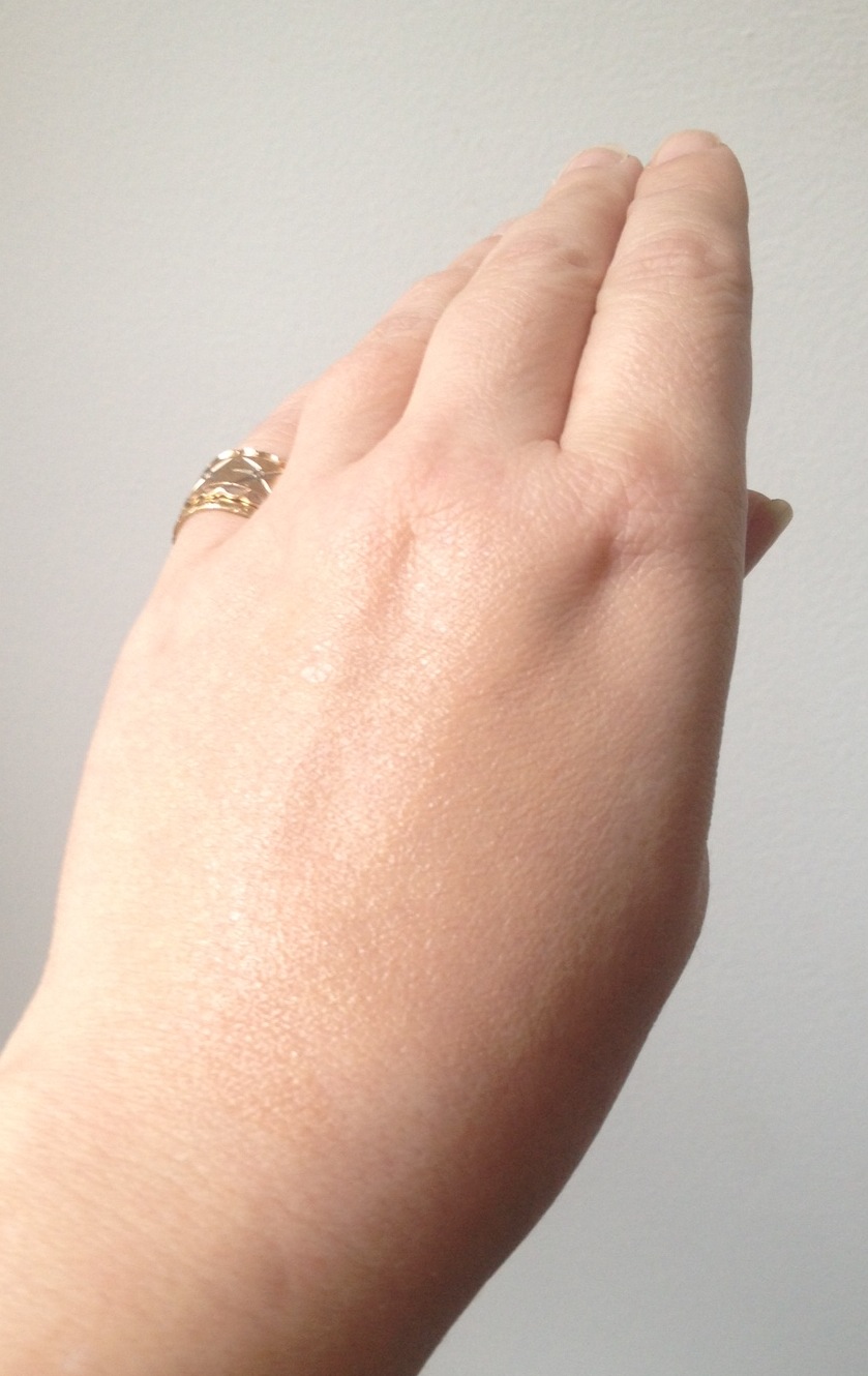 It is somewhat ruddier than my skin tone, but it’s got a lovely shimmer to it.
