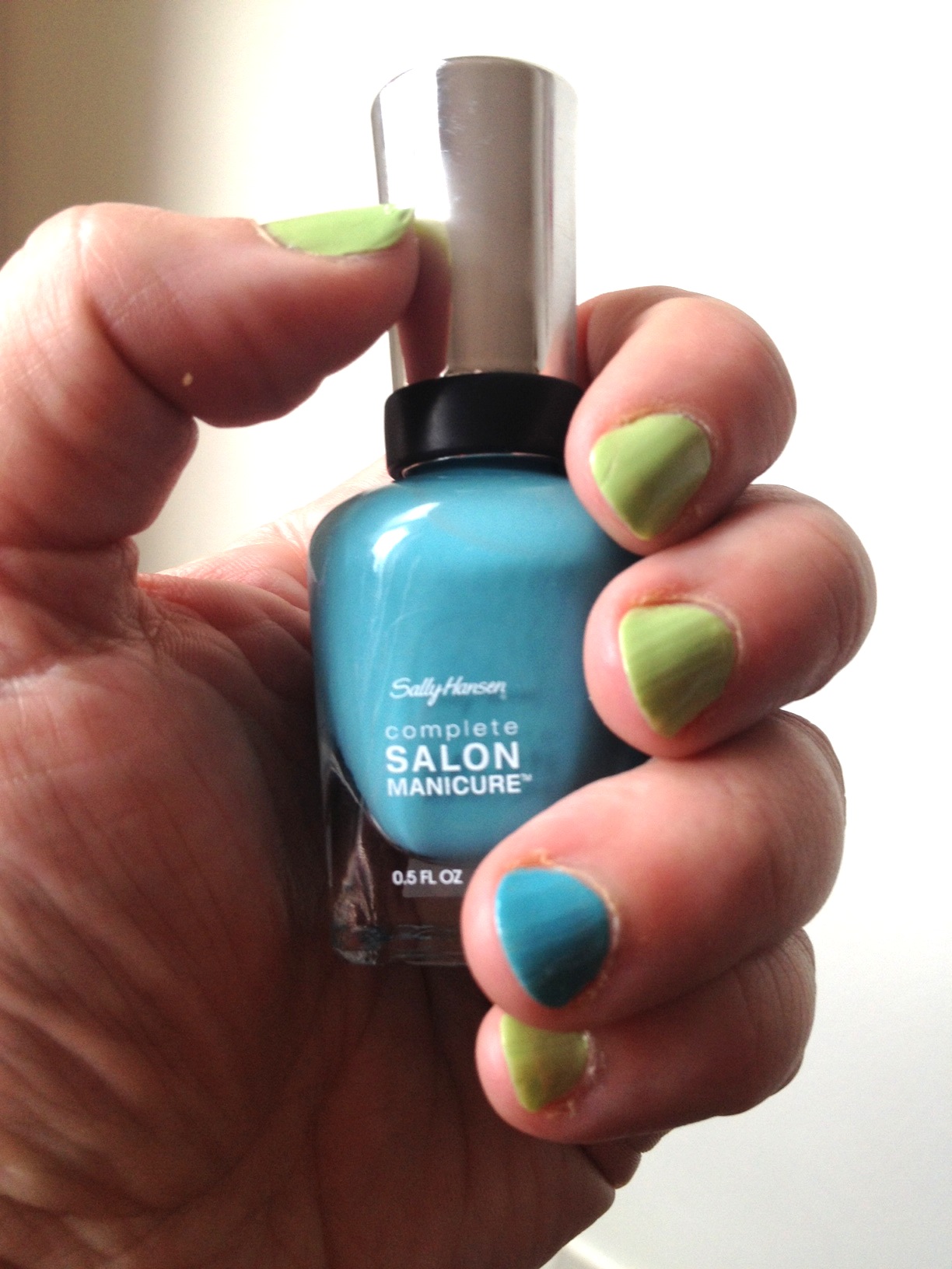 I’ve already dinged ’em though, so I’m still not convinced as to the completeness of the salon manicure. And I’m going horsing tonight, so we’ll see how they hold up to that.