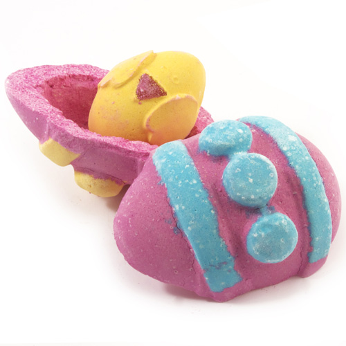 I was so eager to paw through this that I didn’t take any photos of the interior, so will have to do this the old-fashioned way and use my words. There are three stacked trays with 32 individual compartments, in which resides each product, and the whole shootin’ match is full of styrofoam beans to keep everything from getting smashed. The assortment includes shower gels, bars of soap, bath melts, lip tint, lip scrub, and an array of the ballistics and bubble bars, and couple of body creams.