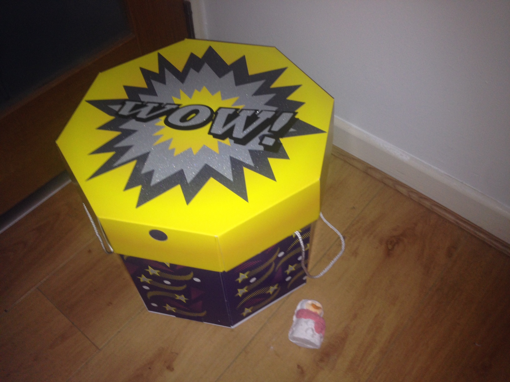That’s how big the box is. I had initially taken a photo of the box with a pencil lying on the floor, because… I don’t know why, because people used to use pencils for scale, much less writing? I can’t even believe I had a pencil in the house! Then it occurred that the pencil was ridic, and I used the Snowman instead.