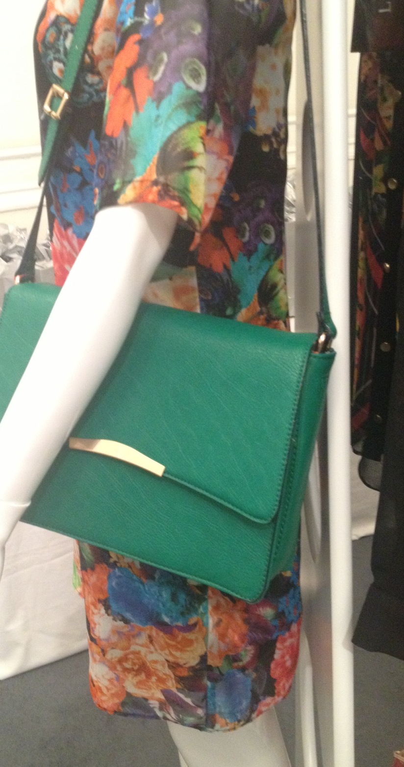 I didn’t get a snap of the big bucket-y shoulder bag they’ve got going on — I liked the red one. No, the blue one! No, the red one. Definitely. How about this little little bit of structural genius in teal?