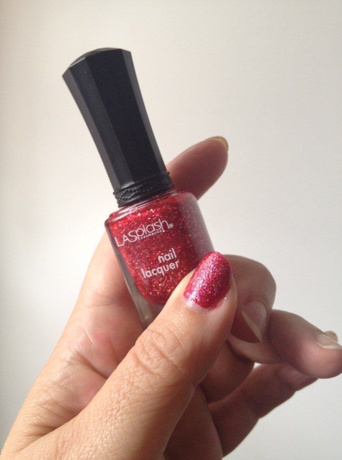 I like this LA Splash glitter nail lacquer. It feels very sturdy on the nails, but it certainly does not look that way! It is totally disco, in the best possible sense.