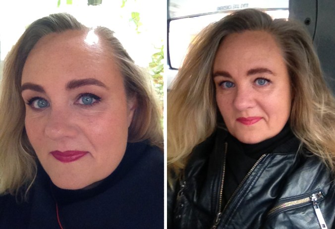 At left, post-make up session at Harvey Nichols with Hourglass’ European training manager Mel Leonard; at right, face by meself.